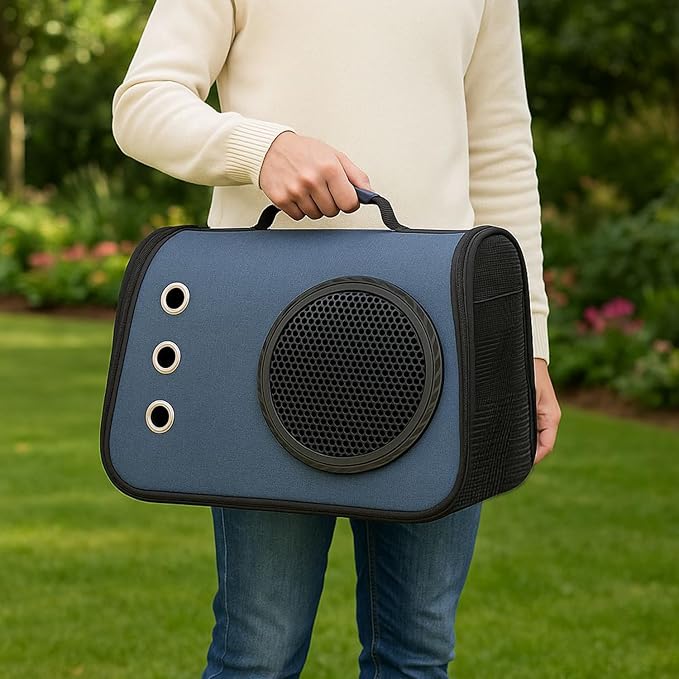 The Pet Factory Cat Travel Carrier Bag Blue | Portable Pet Carrier for Cats & Small Dogs | Rectangular Shape with Mesh Ventilation, Shoulder Strap & Safety Zippers | Ideal for Travel, Vet Visits & Car Rides
